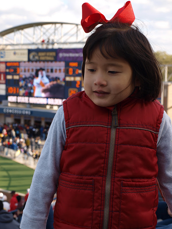 We stayed through half-time, but by then, the fair-weathered-fans were questioning how much longer the game would go on. Especially when the score was 0-3. Besides, warmth and dinner were calling our names ;)